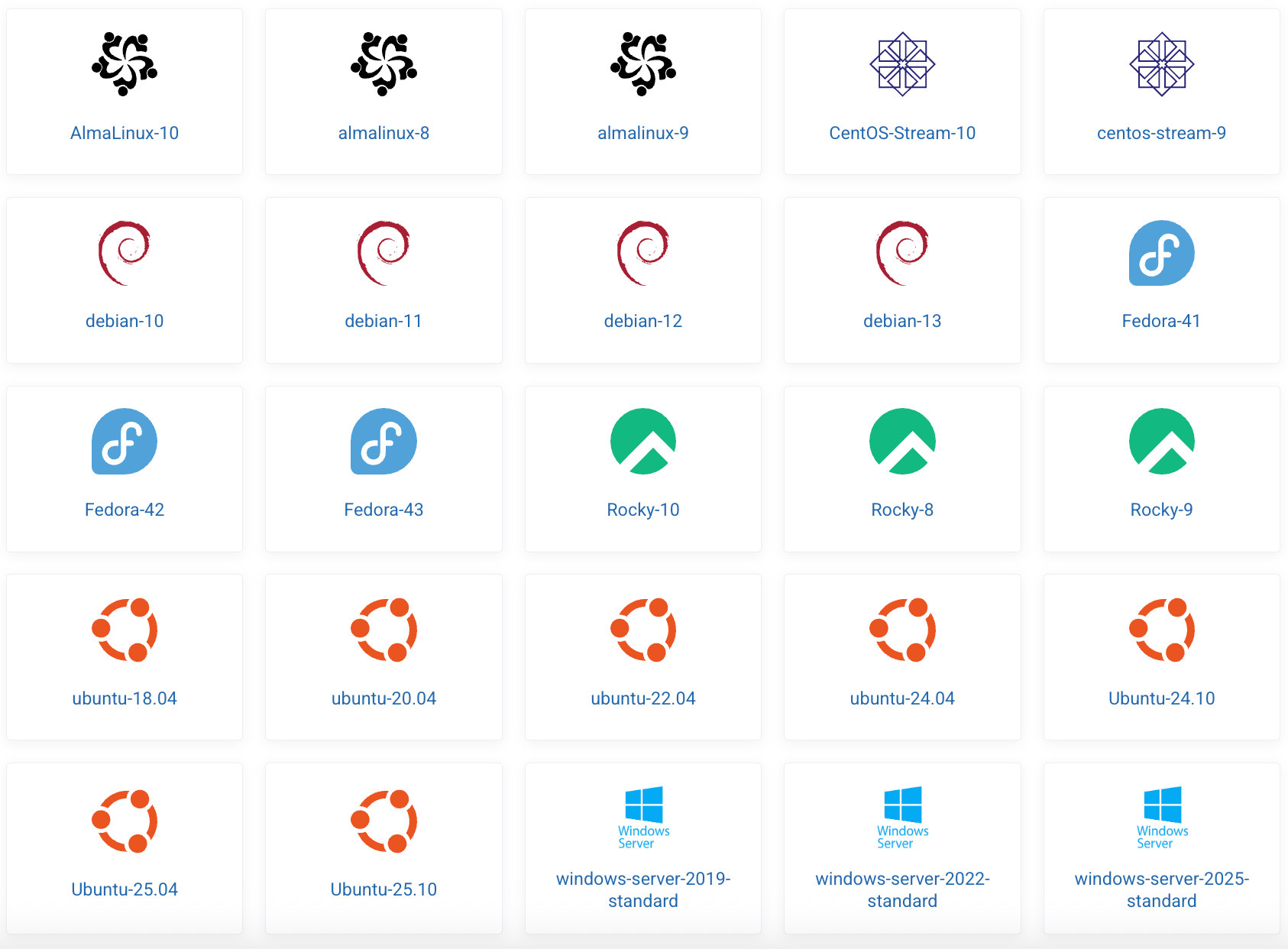 系统的选择上比较丰富,基本平时需要的系统类型都涵盖到,从Ubuntu到Debian和Centos,再到Windows系统(Windows2019、Windows2022、还有最新的Windows2025)不支持自定义上传安装ISO系统,另外这是我见过最详细清爽的系统重装选择界面,之前的都是选定一个OS然后下拉选版本类型,这个可以很直观的看到全部版本类型。