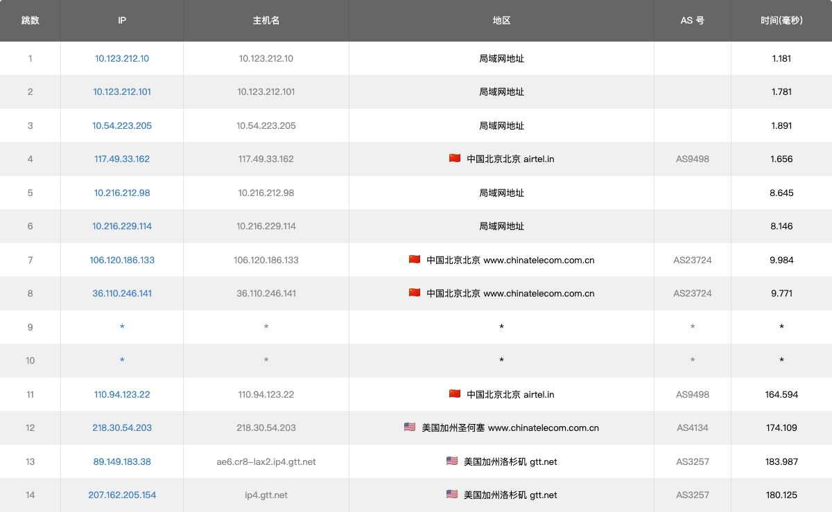 6-7 173.08ms 202.97.*.* AS4134 [CHINANET-BB] 中国 北京 chinatelecom.com.cn 电信