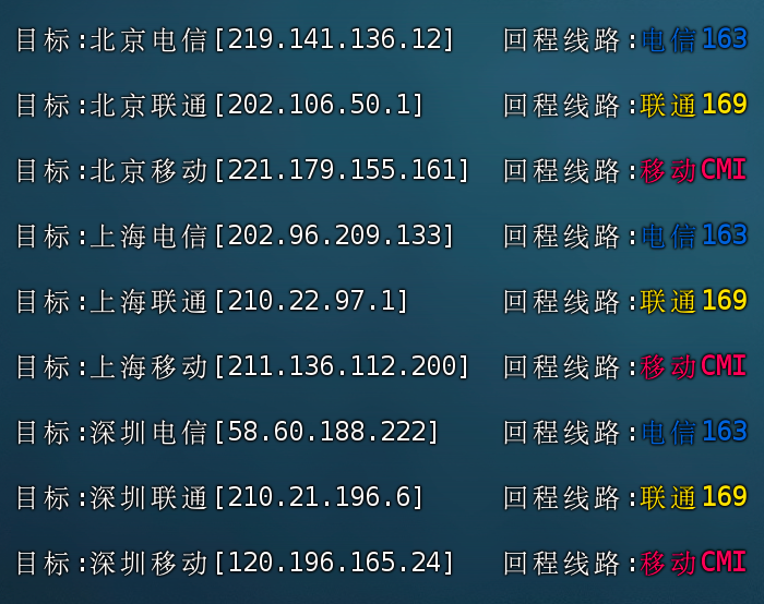 5 8.50ms 223.120.*.* AS58453 [CMI-INT] 美国 加利福尼亚 洛杉矶 cmi.chinamobile.com 移动