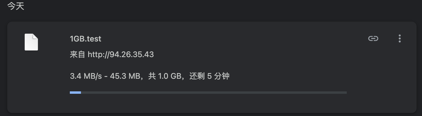 您可以使用当前IP地址测试到本服务器的下载速度。请注意,由于服务器流量和到期时间限制,本文发布后测试链接可能随时失效。