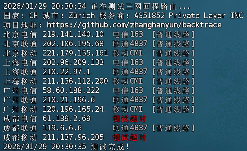地理路径:瑞士 -> 意大利 -> 德国 -> 上海 自治系统路径:AS51852 -> AS43440 -> AS174 -> AS4134 -> AS4812
