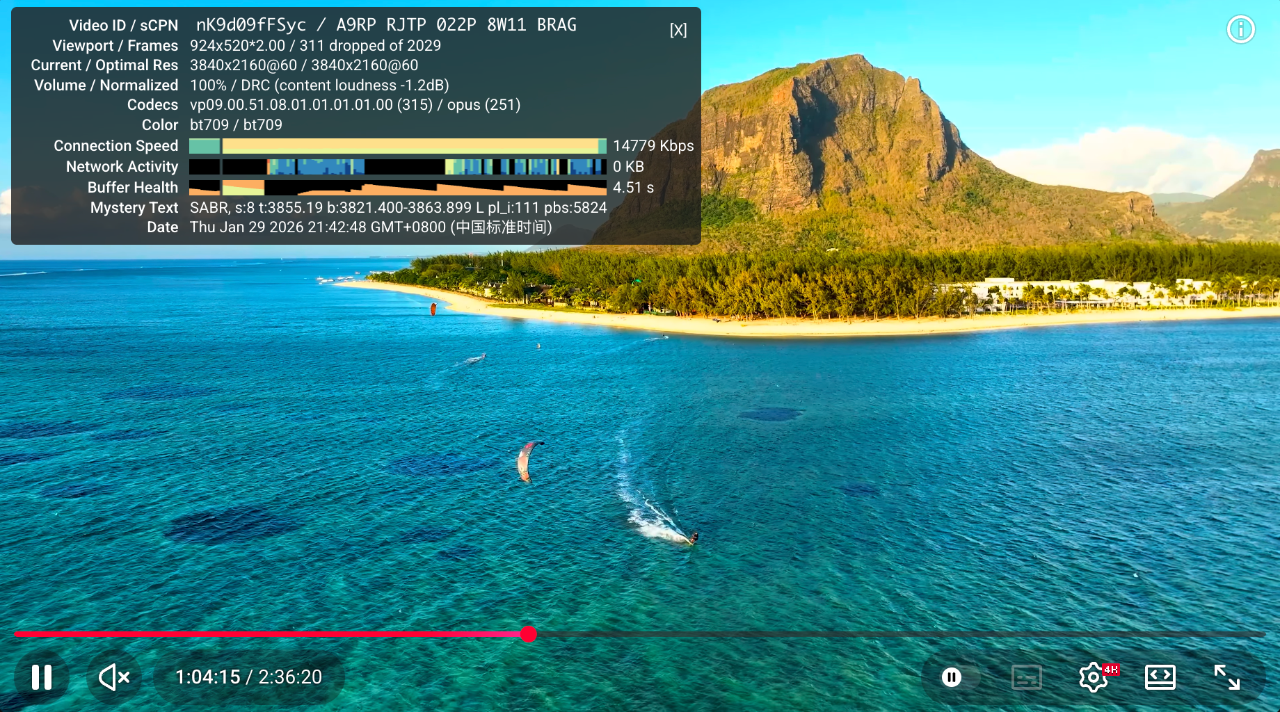 YouTube速度测试,用的是移动100M宽带,并且在WiFi的情况下测试,测试时间是晚上21:42分左右