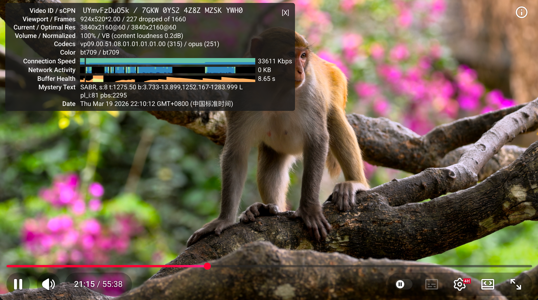 YouTube速度测试,用的是移动100M宽带,并且在WiFi的情况下测试,测试时间是晚上22:10分左右