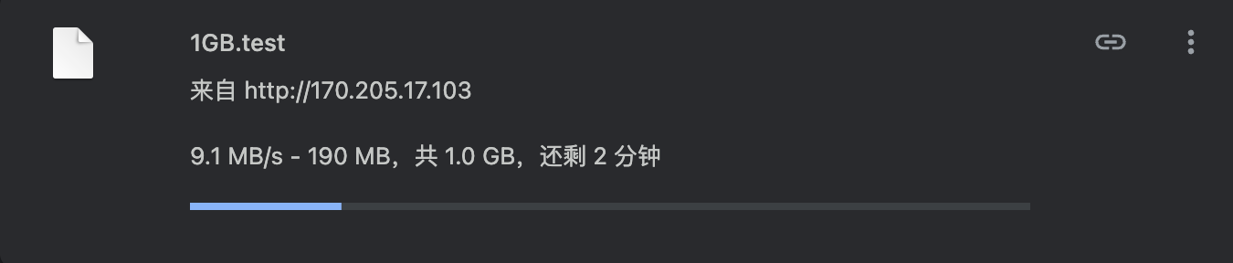 您可以使用当前IP地址测试到本服务器的下载速度。请注意,由于服务器流量和到期时间限制,本文发布后测试链接可能随时失效。