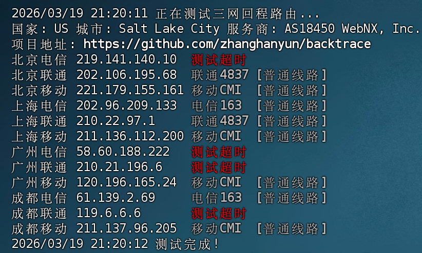 2-3 0.35ms 173.231.*.* AS18450 [WEBNX-BLK] 美国 犹他州 盐湖城 WebNX.com